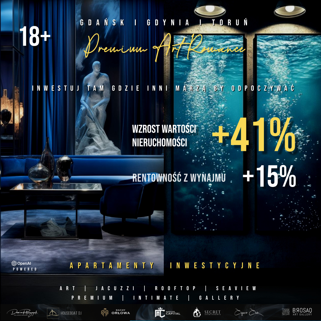 Unikalny projekt inwestycyjny na wynajem zlokalizowany w prestiżowej dzielnicy Gdyni Orłowo – zaledwie 1000 metrów od piaszczystej plaży, w jednej z najbardziej reprezentacyjnych części Trójmiasta.Na dachu inwestycji znajduje się luksusowa strefa SPA z jacuzzi infinity pool oraz loża cygar, zapewniająca unikalne doświadczenia dla gości i wyróżniająca obiekt na tle rynku. Projekt łączy w sobie funkcję Galerii Sztuki Użytkowej oraz wynajmu Apartamentów Premium w stylu Art Romance. Atrakcyjna lokalizacja, wysoki standard wykończenia oraz wyjątkowy klimat miejsca przekładają się na ponadprzeciętne obłożenie i stabilną rentowność przez cały rok.